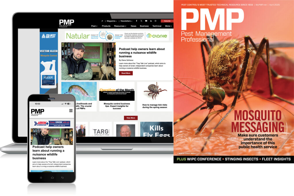 Since 1933, Pest Management Professional (PMP) has provided — through print and digital media, content marketing and events — intel essential for pest control companies to operate efficiently. PMP serves the $11.04 billion U.S. structural pest control market. PMP captivates and educates its audience with three pillars of INFOtainment: pest identification, control and exclusion tips; updates on business tools, obstacles and opportunities; and coverage of new control technologies, techniques and regulations.